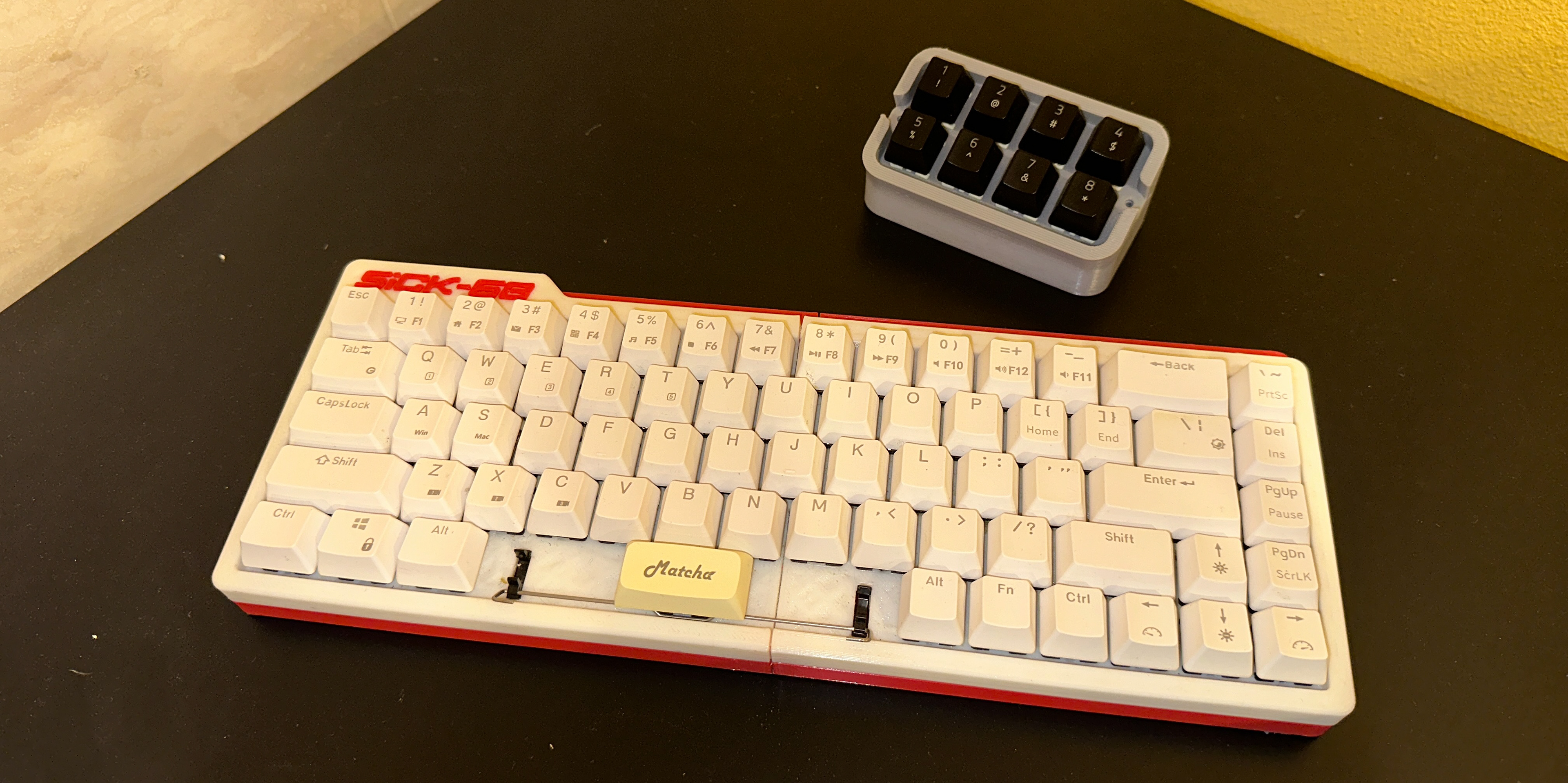 Since this was my first time making a keyboard, I decided to use a premade design I found on Thingiverse. Due to the smaller size of my printer, the print required printing 4 different pieces and gluing them together using pins.