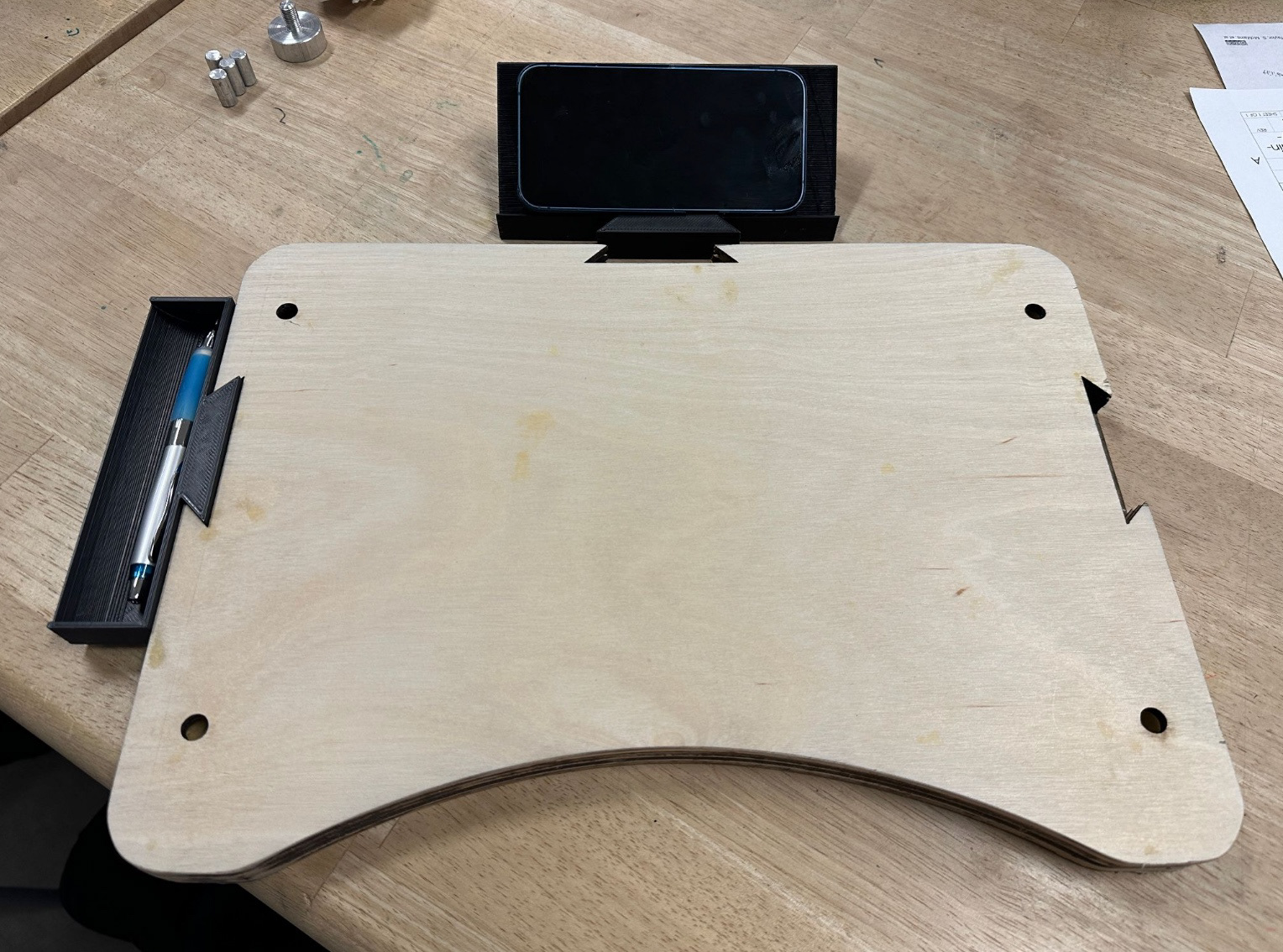 Wearable desk with modular attachment for holding phone stand, a cup holder, and pencil holder